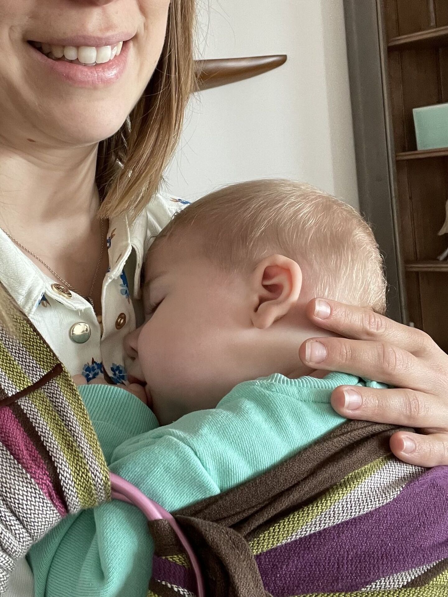 J’anime également des ateliers de portage physiologique, une pratique douce qui renforce le lien parent-bébé tout en respectant ses besoins.